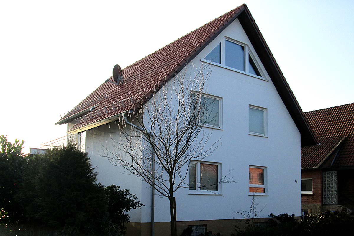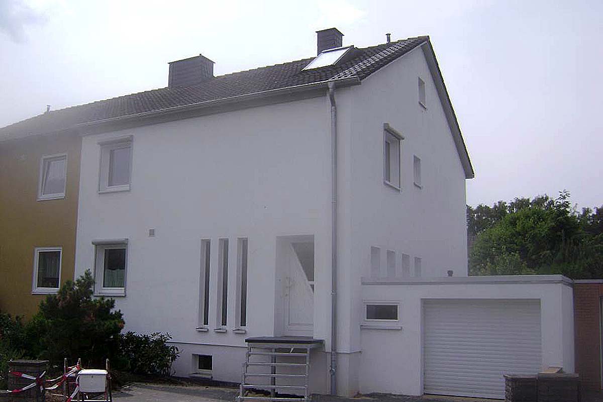 Fassadendämmung mit Thermohautsystem und Putz, Erneuerung der Fenster, Dachdeckerarbeiten mit Erneuerung Dachflächenfenster, Trockenbauarbeiten, Haustechnik mit Heizung und Abwassersystem, Fliesenarbeiten